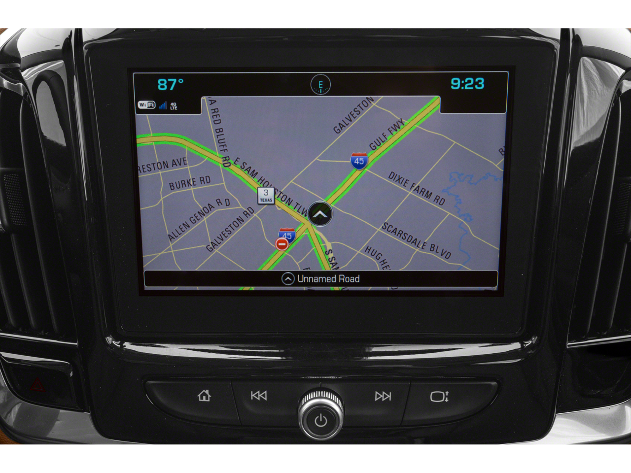 - The vehicle is equipped with a camera that displays an image of the area behind the vehicle on an interior display.
