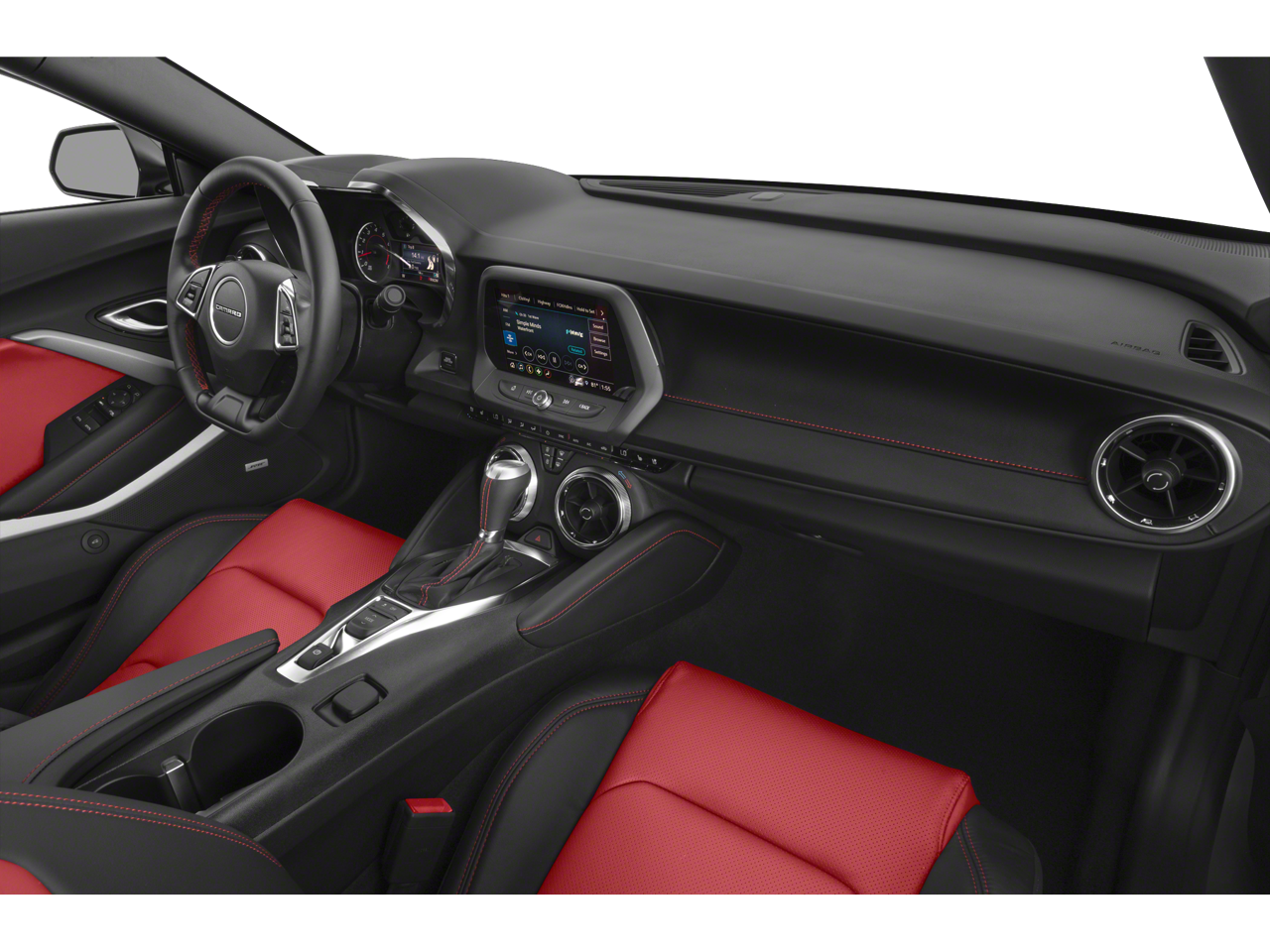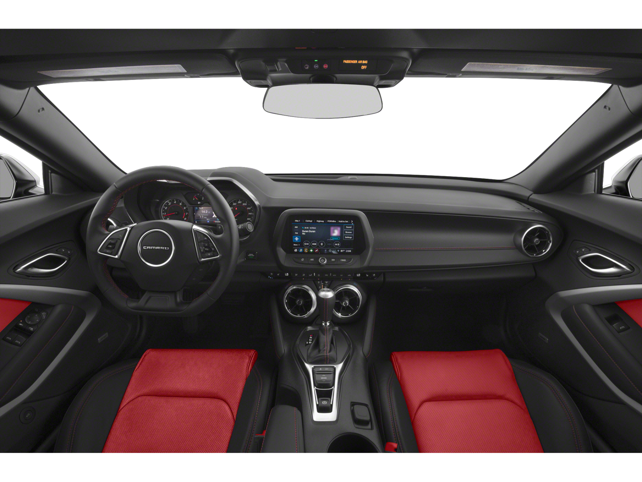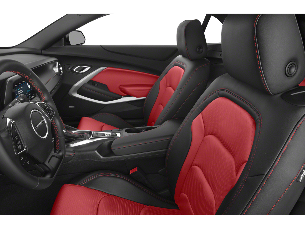 - Black interior with Adrenaline Red front seat inserts, door inserts and stitching on front seats, doors, steering wheel, shifter and center console