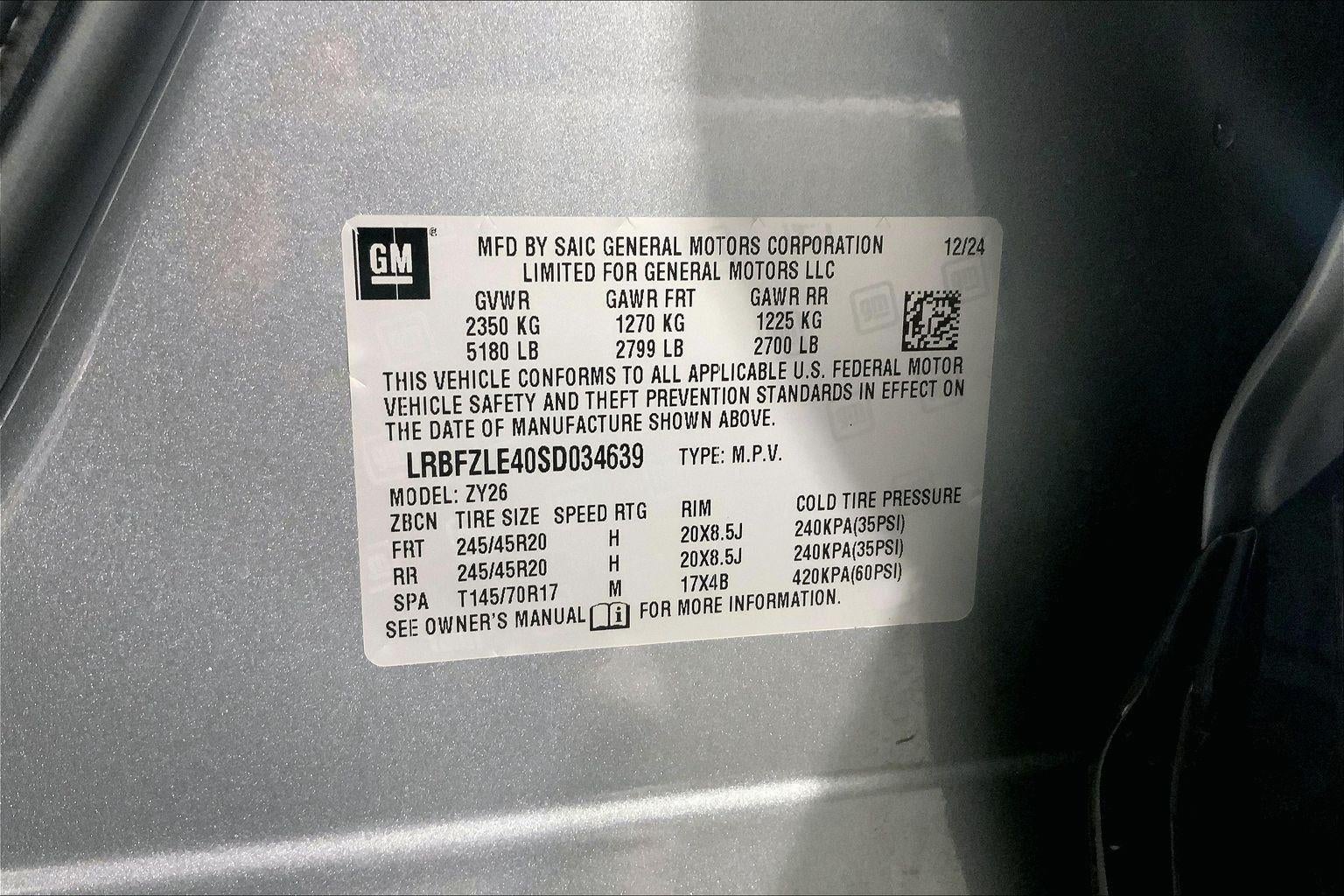 - Tires, P245/45R20 all-season