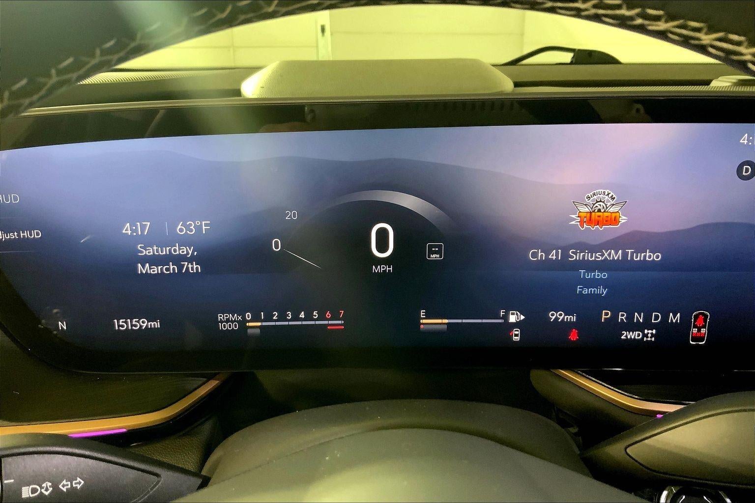- The vehicle is equipped with a camera that displays an image of the area behind the vehicle on an interior display.