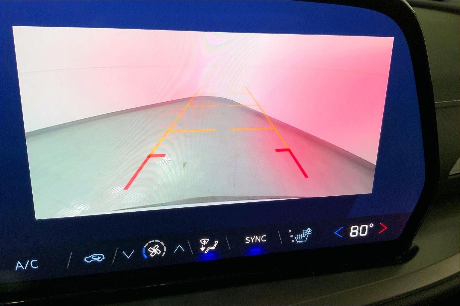 - The vehicle is equipped with a camera that displays an image of the area behind the vehicle on an interior display. The camera is equipped with its own washer.
