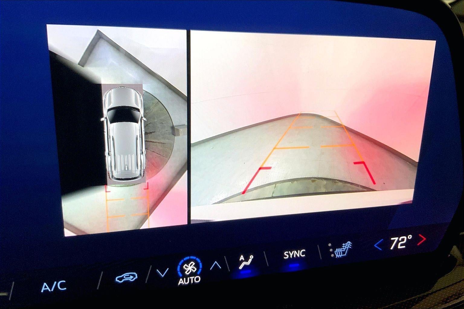 - The vehicle is equipped with a camera that displays an image of the area behind the vehicle on an interior display. The camera is equipped with its own washer.